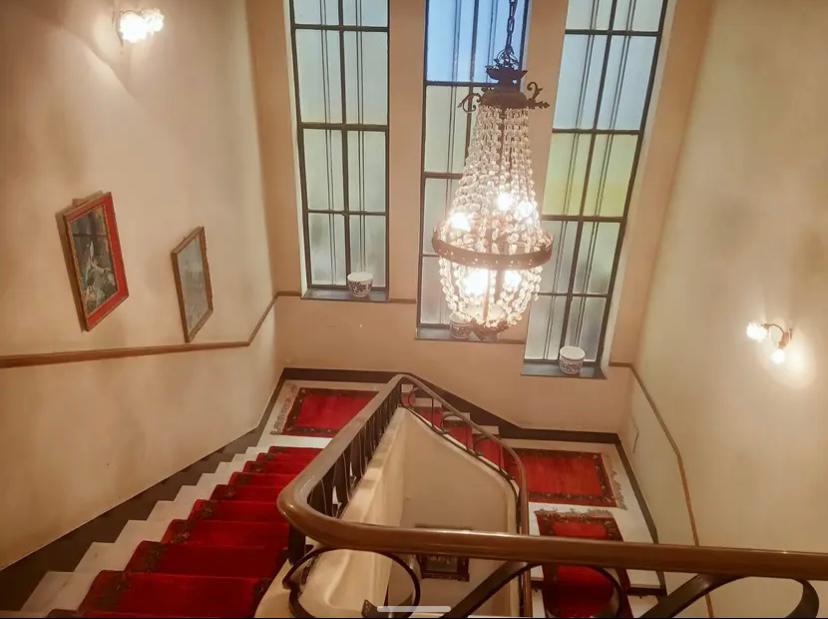 Principal marble staircase with ornate iron-and-glass railings